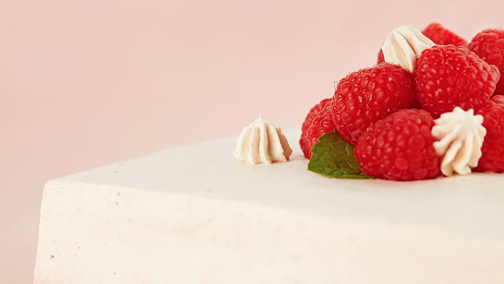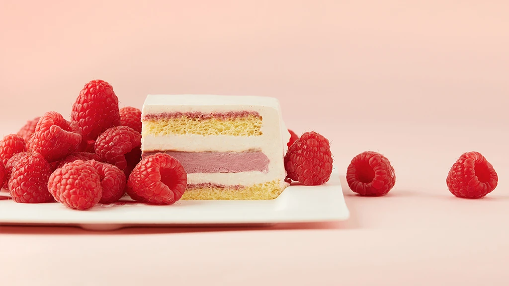Raspberry Cream and berry Mousse Cake.Excellent raspberries have a strong flavor. Several of them are crushed and the house is full of fragrance. The slightly sour high-altitude raspberry is a little wild and needs to be balanced with mellow ingredients.